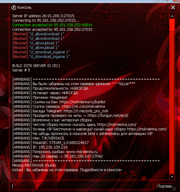 я играл на сервере и заходит киллер админ меняет карту на мансион потом он вызывает меня на проверку через сканер,я ее прохожу спокойно,потом я начинаю писать /mute и он мне говорит ты заебал писать мут и забанил меня за неадекват